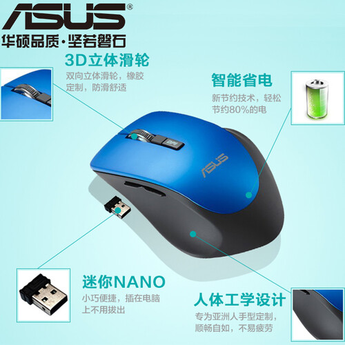 华硕这款鼠标按键声音仅有35~40分贝,营造低噪音办公环境,不会打扰别人。左右不对称设计,掌控轻松手感舒适。