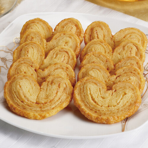 精选优质原料,采用传统的蝴蝶酥的制作工艺精心烘焙而成。每块蝴蝶酥都采用独立包装,方便食用,避免串味,显得十分精致。
