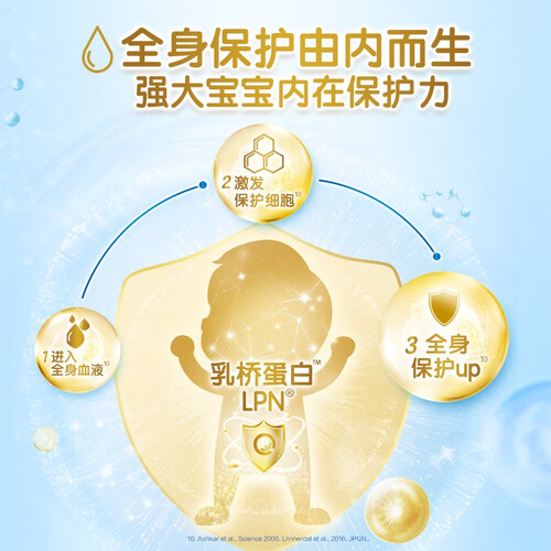 这款配方奶粉采用科学配方,当中含有丰富的OPO,亲和人体,宝贝消化吸收更充分。而丰富的α–乳清蛋白成分,小分子更好吸收。