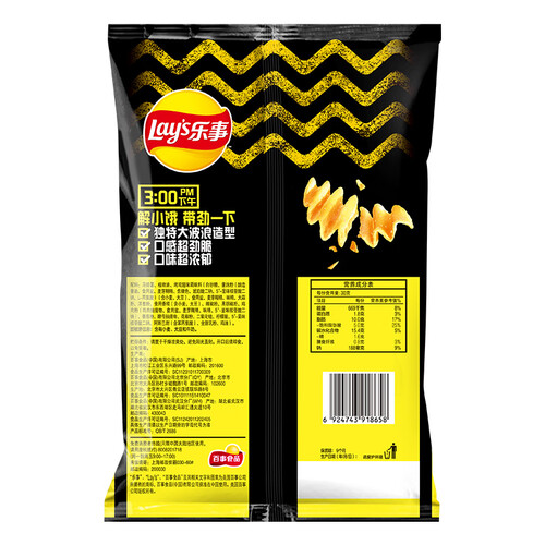 这款薯片甄选优质新鲜土豆为原材料,采用独到切法打造大波浪薯片,吃起来满口带劲。