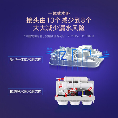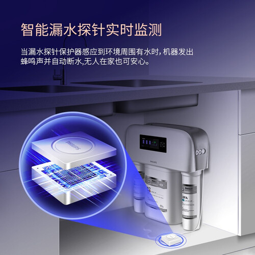 智能漏水探针实时监测,自动断水更安全,无人在家也可安心;进口反渗透膜片,可长效过滤,水质健康,呵护家人安全。