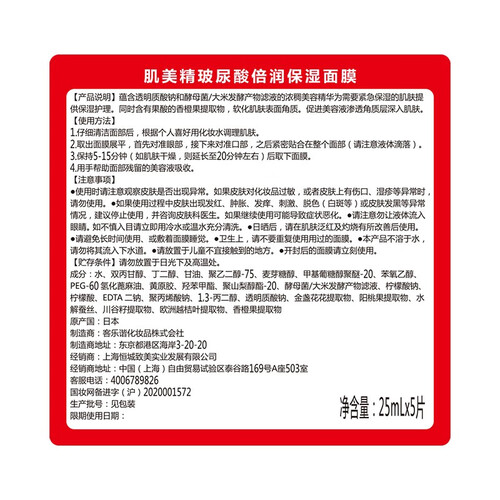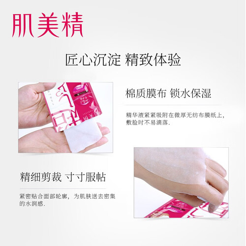 肌美精保湿面膜采用天然棉质膜布,合理剪裁贴合度犹如第二层肌肤,面膜蕴含多种植物臻萃,天然保湿因子令肌肤重现水润嫩滑。