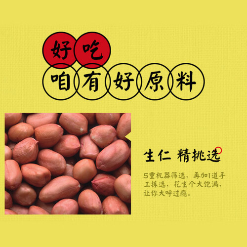 精致食盐与大粒花生仁巧妙融合,能够更好的中和油腻味,久吃不腻。5重机器筛选,避免劣质籽粒的混杂,可利用率更高。