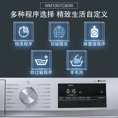 90度高温筒自清洁程序,高温清洗内筒,避免细菌滋生,为衣物提供洁净的环境,避免衣物二次污染,保障家人健康穿衣。