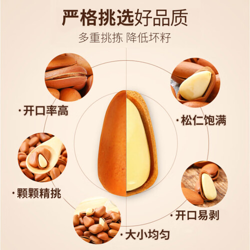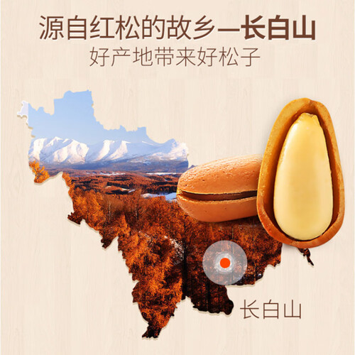 源自东北珍贵红松的松子口感饱满酥脆,原香原色就已经足够诱人,根本不需要多余的调味料。