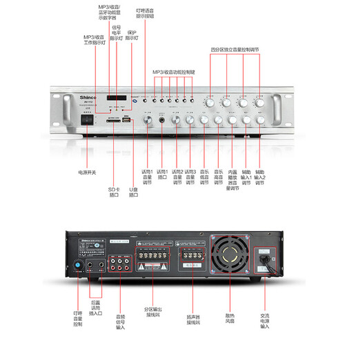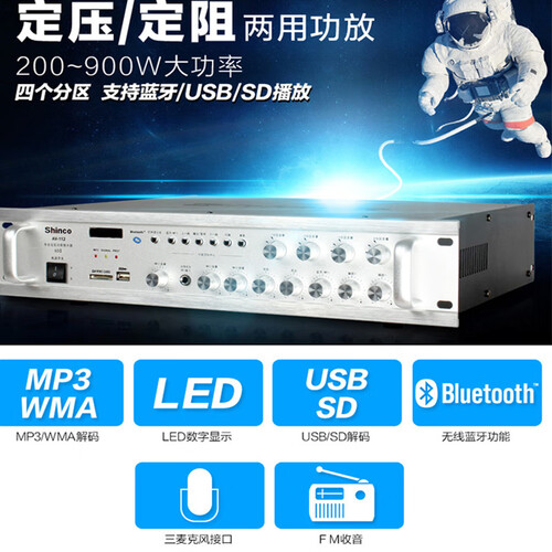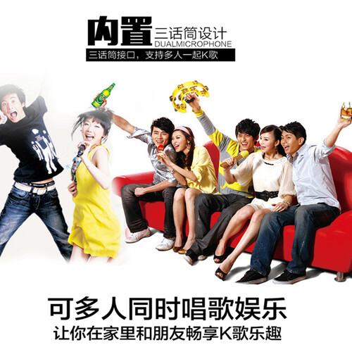 采用三话筒设计,可以连接三个麦克风,多人K歌更欢乐。拥有FM收音功能,具有多个频段可调节,满足你的收音需求。