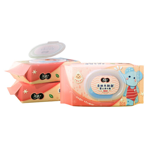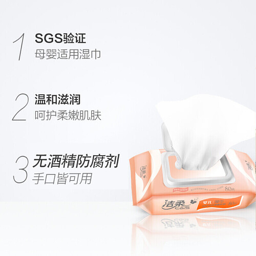 蕴含天然芦荟提取液和牛奶提取液,温和滋润宝宝娇嫩肌肤。柔软水刺无纺布,不易起毛,清洁更方便,使用更卫生。