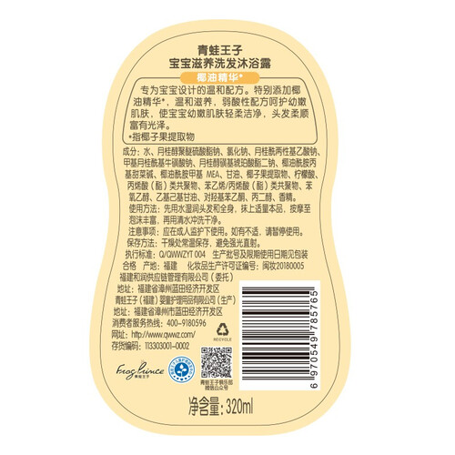 青蛙王子椰油精华婴儿洗发水