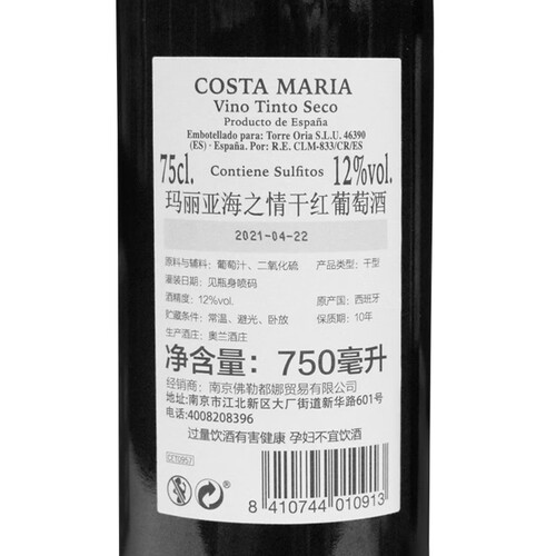 玛利亚海之情柔和微甜干红葡萄酒