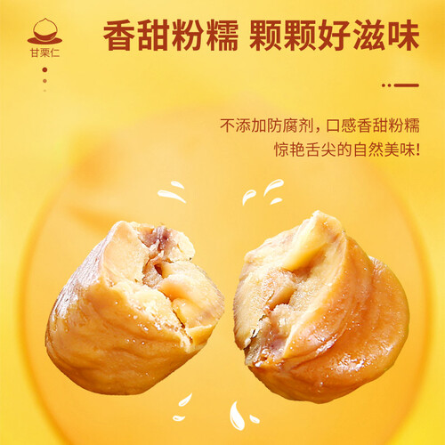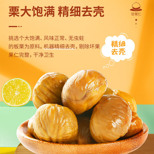 采用精挑细选的好板栗,经过多道自然不添加的工序,为您带来更好的口感,还配有四层铝膜的包装,透湿透氧,只为给您带来好味道。