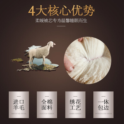 选用高支高密面料制作,经过防钻毛处理后,防止羊毛从面料间隙钻出,久用也能保持被面的平整和美观。
