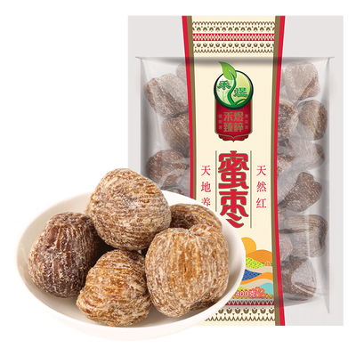 采摘新鲜的枣子,挑选出个大均匀的进行自然晾晒,具有肉厚核小的特点。香甜的蜜枣,入口带有枣子的清香,甜而不腻。