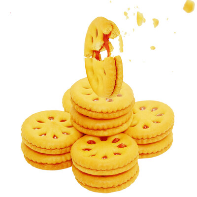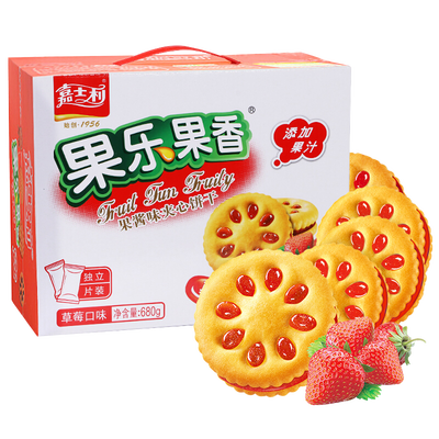 优质果酱填满整个夹层,香甜细滑的夹心好吃不黏牙。新鲜果汁熬制的果酱,健康原料造就品质饼干零食。