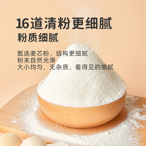 精选中原优质小麦基地原料,科学润麦,轻磨细研。面筋含量高,面色自然洁白,面质手感柔软,面粉劲道细腻。