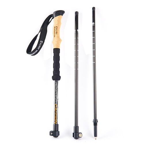 钨钢杖尖,硬度高,坚韧耐磨损,抓地力强,持久耐用更安全。碳素材质的应用,使登山杖变得更轻更耐用,韧性更高,缓冲更强。