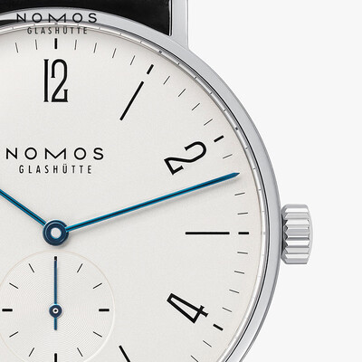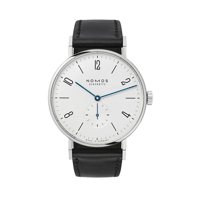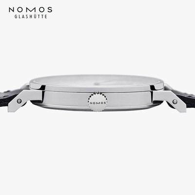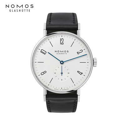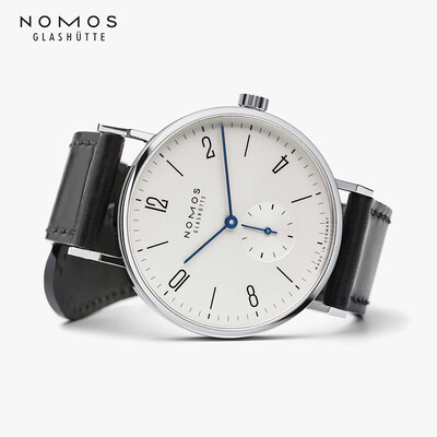 鲜明的包豪斯风格设计,白色盘面搭载时标、蓝色指针,布局合理,独具一种极简风范。搭配皮质表带,商务休闲皆可佩戴。