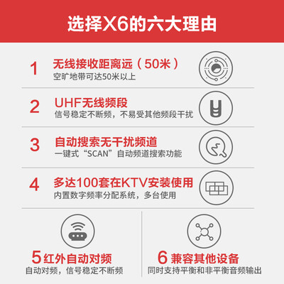 采用UHF频段设计,不受其他工业频率干扰,音频调制锁定功能,更好避开干扰。能够同时支持平衡和非平衡音频输出。