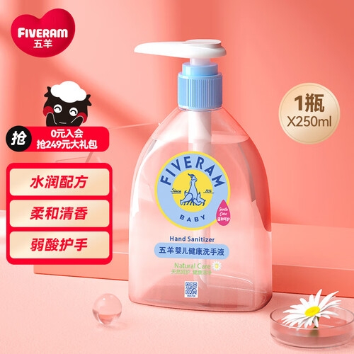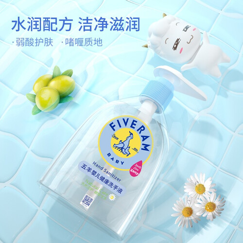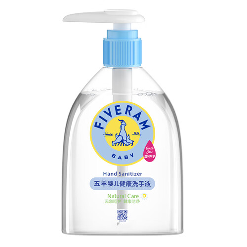 五羊透明儿童洗手液添加椰油酰胺DEA、甘油等成分,双手洗后不干涩。