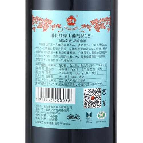 通化 饱满圆润甜红葡萄酒