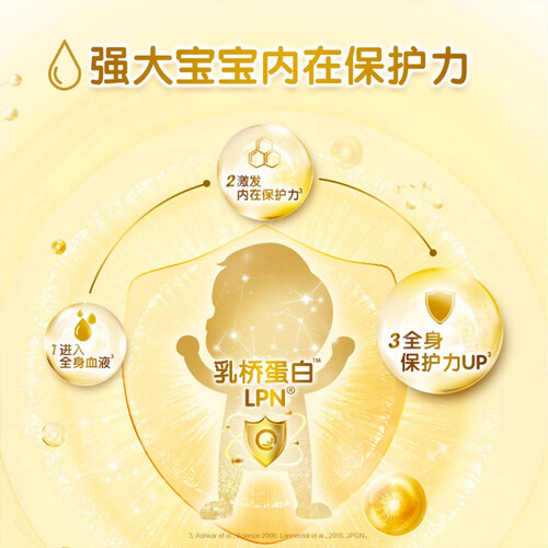 具有种类丰富的脂肪酸,能够促进营养吸收,呵护宝宝健康成长。内含珍稀保护因子,具备四倍乳铁蛋白,营养价值高。