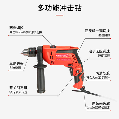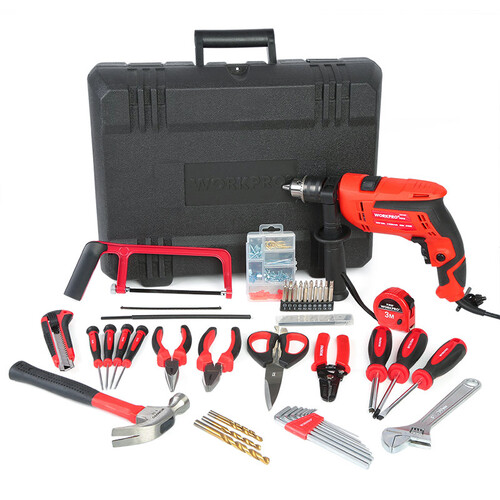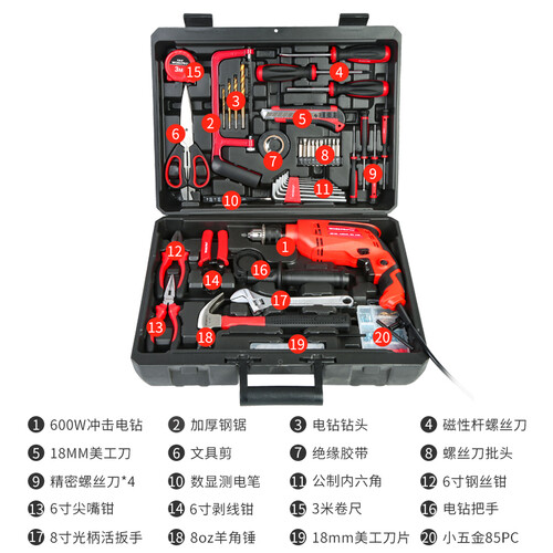 此款内含170件工具,种类齐全,满足日常维修改造所需;冲击钻可智能变速,科学合理发力,打孔更加轻松快速。