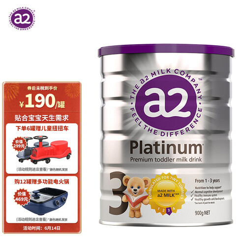 消化吸收好,营养更安心。源自新西兰的进口奶源,富含优质A2型蛋白,并添加益生元成分,促进宝宝肠胃吸收,为宝宝成长提供营养支持。
