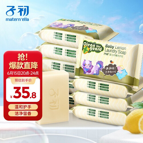 专为婴幼儿研发的天然植物洗衣皂,有效清洁宝宝衣物上各种顽固污渍;艾草精华能让衣物持久留香;芦荟萃取液更能呵护妈妈双手。