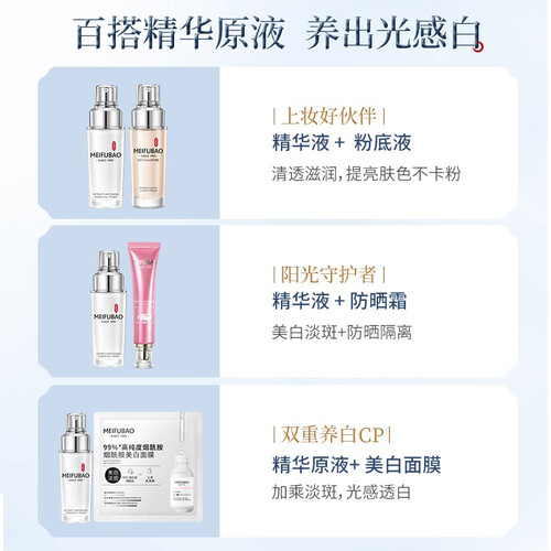 四种植物精萃配比,改善肌肤;保湿滋养直至肌底,舒缓呵护肌肤受损脆弱现象;滴滴精华,让肌肤远离暗沉,绽放迷人光彩。