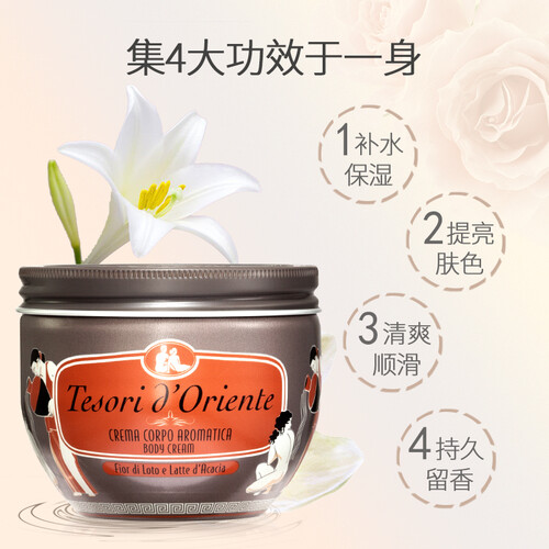 内含双重补水因子,可以缓解肌肤干燥起皮的问题,更适合秋冬季节使用。采用复古铝罐进行包装,香气不流失,味道更加清新怡人。