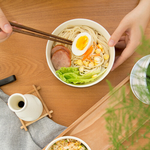 碗的外部采用芝麻釉色工艺,健康安全而且具有哑光质感。而且碗的整体设计平滑,拿握稳固而且放置不易倾倒。