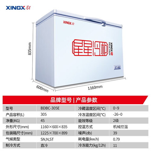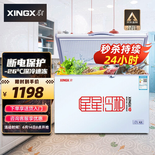 星星 大冷冻力顶开门冷柜