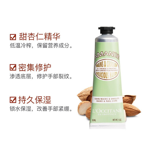 添加甜杏仁精华成分,成分温和舒缓,使用不刺激不敏感。富含维生素E成分,持久滋润双手,打造细腻嫩滑肤质。