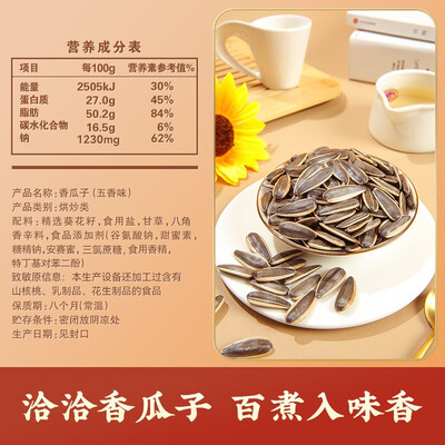 瓜子采用微压煮制工艺,避免营养成分流失,都一颗都经过层层考验,颗颗饱满,少坏籽,粒粒香脆。