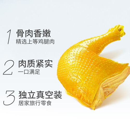 选用健康的肉鸡,选取鸡腿部位,肉质紧实嫩滑,经过盐焗工艺生产,不添加过多调味料,保留原有的香醇和盐焗风味。