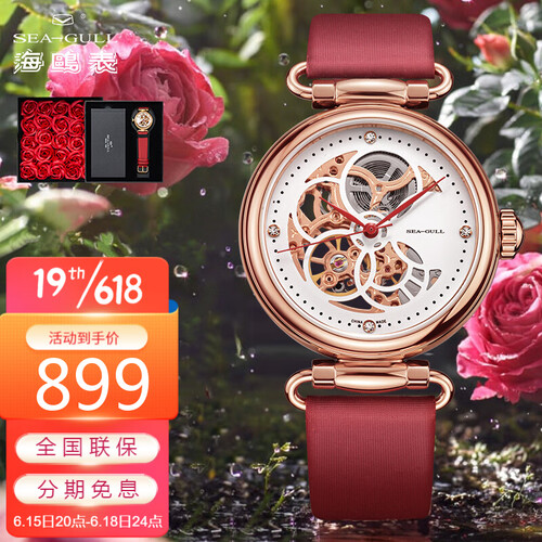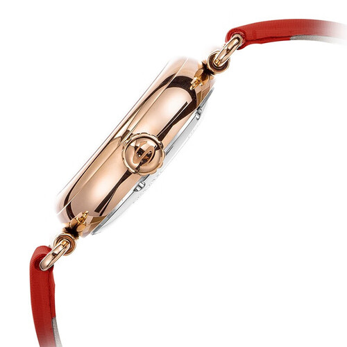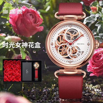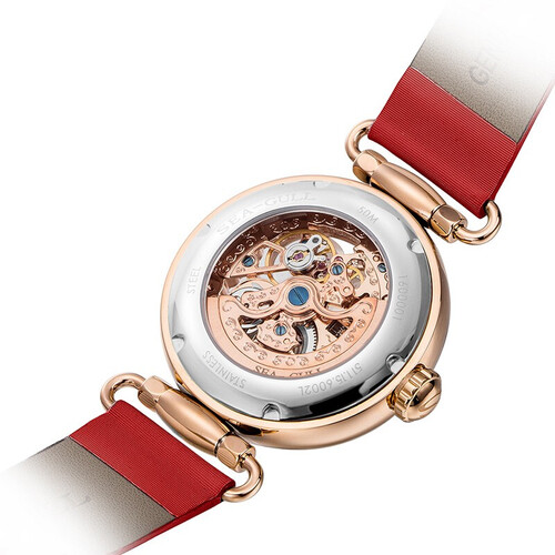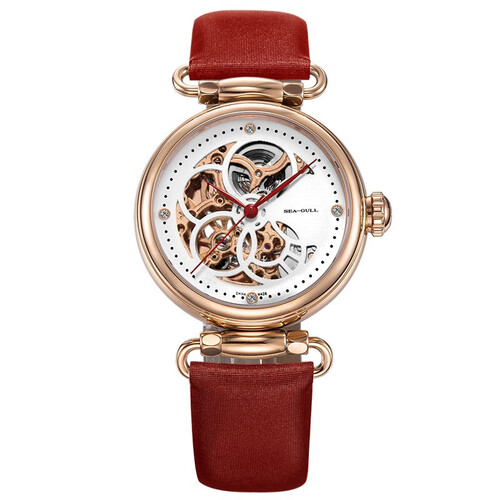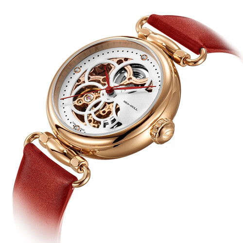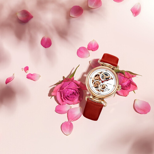 采用3D镂空设计,机芯宛如翩翩起舞的蝴蝶,增添了一抹灵动之美。红色纤巧的指针设计,尽显女性的优雅与温柔气质。