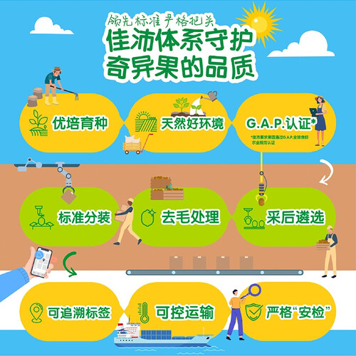 源自新西兰、意大利的奇异果,当地光照充足,土壤肥沃,孕育出优质果子。甄选好果,果体圆润饱满,入口酸甜多汁。