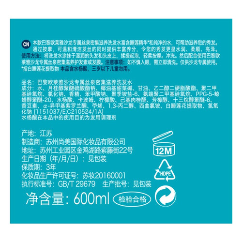 巴黎欧莱雅沙龙专属 清爽洗发水