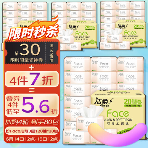 洁柔 柔韧抽面巾纸