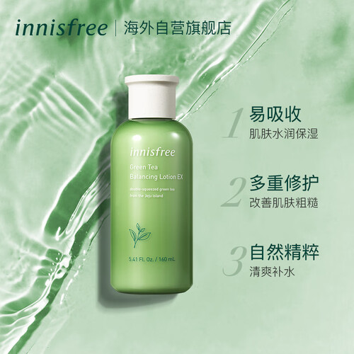 来自济州天然绿茶水,有效改善肌肤出油状况,缔现轻透水嫩肌肤。乳液质地,水状易于涂抹吸收,肌肤即刻水润Q弹。