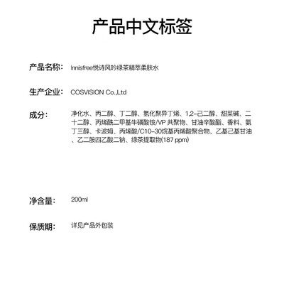 悦诗风吟绿茶精萃保湿平衡柔肤水