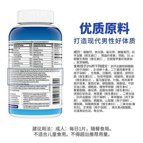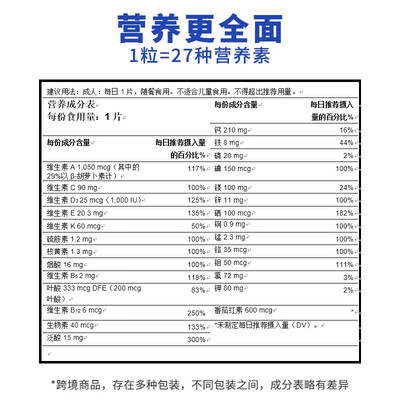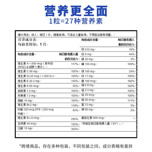 为男士定制,27种营养助力男性健康。含8大B族维生素和男性所需的番茄红素、硒,及钙镁维生素等骨骼营养,多营养协同均衡,补充不过量。