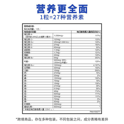 专为中老年男性体质打造的营养配方,含有多种维生素和矿物质;特别添加了番茄红素、叶黄素等成分,补足多种关键营养。