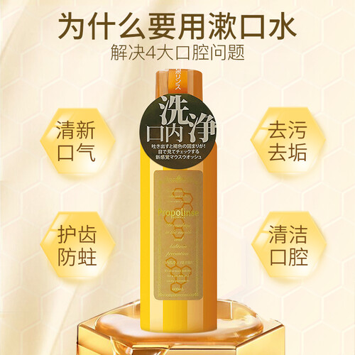 蜂胶复合漱口水,天然温和不刺激,持久清新口气。大容量瓶身,实用耐用,有效应对牙齿污垢,深层清理,让牙齿更洁净。