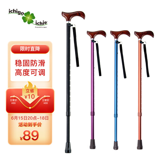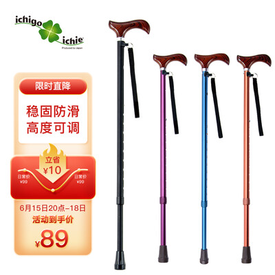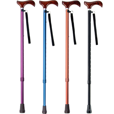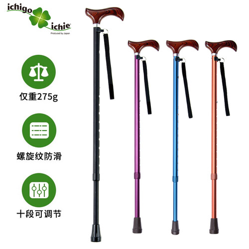 四种颜色可以选择,枫木手柄,伸缩10段可调节,适合不同身高需要,铝合金制伸缩拐杖,实用稳固。