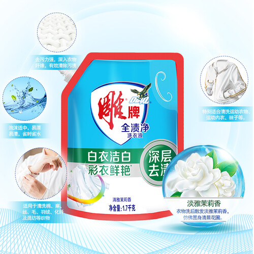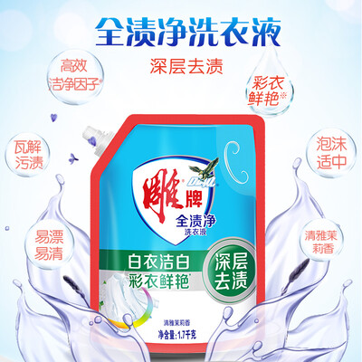 具有清新依兰草香气深层去渍洗衣液,采用手洗与机洗都适用的温和配方,不添加磷与增白剂,具有良好的护衣护色功效。