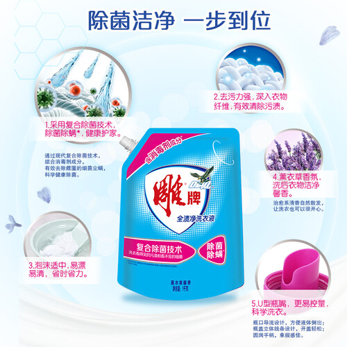 带有薰衣草香味,洗后衣物散发薰衣草芬芳气息,穿着更舒适。含有多种活性洁净成分,去除污渍能力强,清洗更干净。