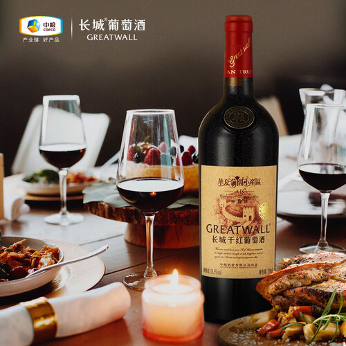 长城葡萄酒采用控温发酵、陈酿工艺酿造,酒体醇厚丰满,入口如丝绒般细腻,具有怡人的香气,给约会增添几分浪漫。