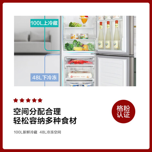 全金属材质外壳,一体成型的顶板侧板,使冷气更加的均匀,搭配细密发泡层,保温持久又省电。