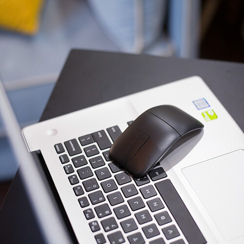 采用可折叠设计,只需简单旋转折叠,即可将鼠标置于扁平关机模式。此外配备触控带,能够实现更准确的滚动。