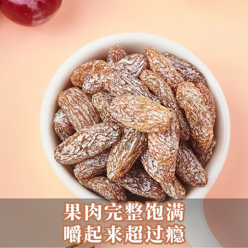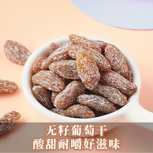 无籽葡萄干,原果制作,晶莹剔透。源自新疆产区,皮薄肉厚颗粒大。适量糖和盐腌制入味,风味独特。